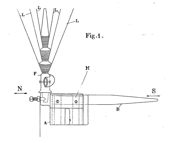 apparatus, between the 2 poles of part A in form of magnet, pass a