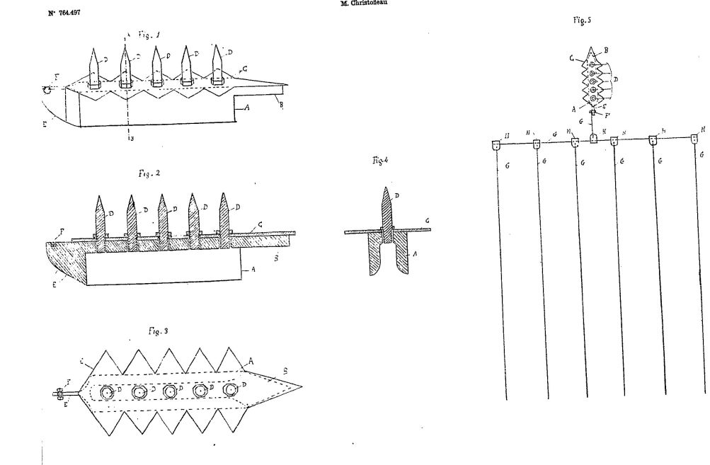 of rivets D, on a tray E, pierced, of an opening F, allowing in