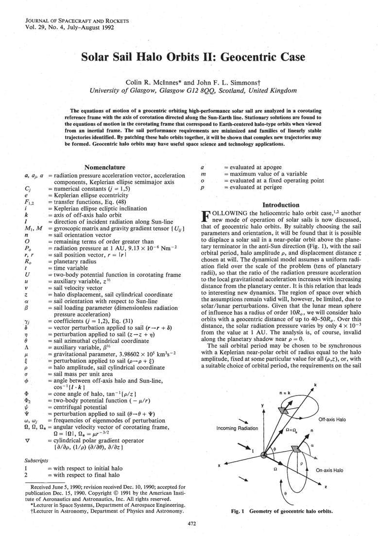The concept of the statite was invented independently and at about the same time by Robert L. Forward[1] (who coined the term "statite") and Colin McInnes, who used the term "halo orbit"[2] (not to be confused with the type of halo orbit discovered by Robert Farquhar). Subsequently, the terms "non-Keplerian orbit" and "artificial Lagrange point" have been used as a generalization of the above terms.
