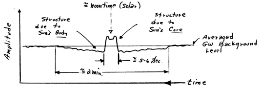 (2) There is a net flux of rhysmonic ‘material’ flowing out from the core regions of the sun to sustain an apparent increase in the g-fields on earth as shown for the body regions above. This region is gravitationally ‘translucent’ and thus allows many other cosmic events to ‘pass through’.