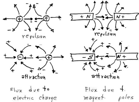 (1) Scalar "flux" lines in rhysmonics are directed rhysmonic vectors and have a reality since they are dynamic effects in the rhysmonic structure which makes up this universe. They are similar to the "lines of force" imagined by Faraday and Maxwell, and are much the same as depicted in some conventional electric and magnetic theory, e.g., the electrostatic and magnetostatic flux lines. Therefore, the interaction of gravitational flux with local scalar flux as shown in Figure (2) is very similar to the interaction of electric and magnetic flux lines as shown in Figure (3), since they are really the same entities. Thus g-fields, E-fields, and H-fields are but different aspects of rhysmonic flux fields.