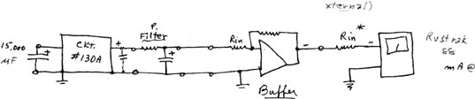 5. Buffer stage (741) needed to drive Rustrak low-Z without instabilities.