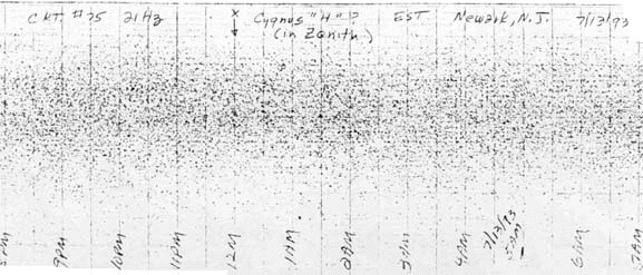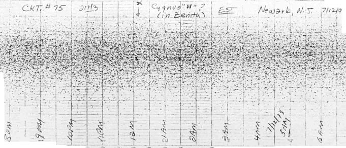 To confirm the reality of the scans of Cygnus H and the redeveloping "structure" at the Galaxy Center, these scans were repeated on 7-21-1993. As the plots of Figure (1) show, these "events" were largely duplicated. The galaxy Center response is essentially unchanged, but Cygnus H has changed somewhat --- but this was expected since the Rustrak 2-D plots seemed to indicate that this "event" was possibly two black holes in rapid close orbit around each other. This investigation was begum because we speculated that perhaps some "new" massive cosmic event might be generating fairly strong "gravity winds" which in some way were affecting the jet stream in the northern hemisphere. There was also a possibility that the rotating "holes" seen in the Rustrak plots were relatively close in the Cygnus area and may have had a phase relationship with the earth's rotation which could be keeping its maximum effect pointed toward a particular 40-42o North Latitude location and which is only very slowly moving across the Earth (in this case the USA?). To further look into this, I went over some past 2-D Rustrak scans I had remaining here.