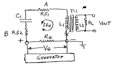 3. Reactive circulating current also flows across the generator input resistance, RG, where it “bucks” VG and depresses it to very low values. The reactive voltage across the winding, L1, in the pulse transformer T-1, is transferred to winding, L1, in the pulse transformer T-1, is transferred to winding, L2, where it now develops real power in the load resistor, RL.
