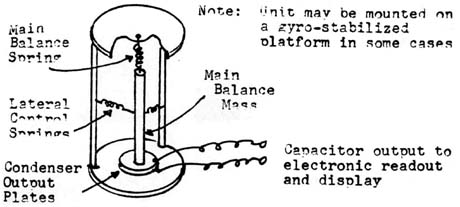 Practical mechanical gravimeters should respond only to the actual vertical variations in the value of g. Commercial gravimeters of this type are constructed so as to not only limit lateral movements due to winds, temperature variations, vibrations, etc., but also to provide for an electrical-type readout rather than a purely mechanical readout so that the variations could be electrically scored and/or displayed on some recorder unit. Therefore, these types of gravimeters are generally quite complicated and expensive, and thus beyond the means of the average amateur scientist. A depiction of a possible unit of this type is given in Figure (4a).