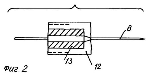 Between 8 and the needle handle 12 cap 13 is made of a dielectric material traversed by the microwave electromagnetic waves.