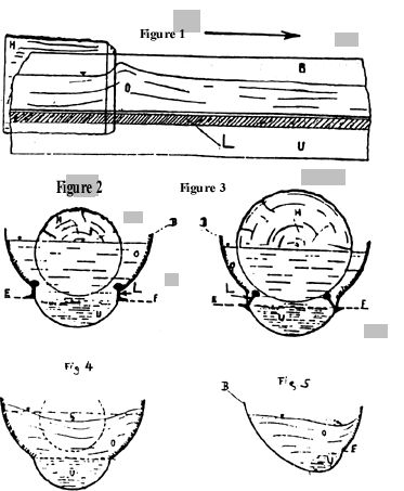 If a communicating pipe is interposed between this naturalesquely evacuated highly potent vacuity imbued with qualigens and the outer pressure of atmospheric space, and if a propeller or turbine is installed inside it, then the external atmospheric pressure exerts a force of 1 atm/cm2 on the inclined blades of the propeller (turbine). Since any desired volume of air can be reduced (transformed into formations of qualigen) in a fraction of a second with a naturalesquely constructed Repulsine (see figs. 30-33), for which at most a driving force of 0.8 kW isrequired, the levitative torque-producing force generated, or more correctly ur-generated, in this way is as good as free. For here, with increasing velocity due to the upward activation of the above bio-synthesising torque-producing force, the Repulsines power increases by the square of the ur-generative motion. This is to be compared with the increase in the resistance to motion in all technical machines, where understandably, due to the reversed direction of motion the forces of recoil increase in the same ratio as described above. That is to say, todays technology strives to move forwards with forces that operate backwards. Logically what has been achieved is not only a reversal of motion, but also of the economy; an economic decline resulting from the mechanical build-up of decadent repulsive pressures, which naturally have a decadent or destructive effect economically. Consequently, the economy willbecome increasingly unhealthy, the more widespread and intensive such technology, this self-deception becomes, or to put it mildly, the more the abysmal stupidity of generating decadent energies mechanically takes effect. This tragic aberration was inaugurated by the foolish belief that the progress of evolution comes to a halt when the life-functions are apparently extinguished and that the so-called soul escapes after the cessation of vital activity. In reality the true resurrection only begins after the proper decomposition of an atom lattice (fatty-matter concentrate) that has fallen back into the earth with the aid of and because of the cycloid-space-curve motion of the Earth itself, which provides the radial->axial impulse. In contrast, all technical machines, i.e. all dynamos, turbines, pressure pumps, propellers, explosion and steam driven engines, all furnaces, gas and electric heating appliances,all soil-tilling and harvesting machinery, etc. provide a developmentally harmful expulse to initiate motion. Because of this and without exception,the atom lattice thus moved ruptures, resulting in the disintegration of the molecular (bacteriophagous) formations in suspension. In unnaturally moved air or water decadent stresses appear, causing the decay of the decivise energy-concentrates (as a graphic example, see hydraulic river regulation and torrent confinement ( 6 -- See sections on river engineering in The Water Wizard, Vol. I of the Ecotechnology series. — Ed). This leads to the build-up of decadent potential and thedecomposition of the blood of the Earth, and thus to a total economic collapse along the whole course of development.