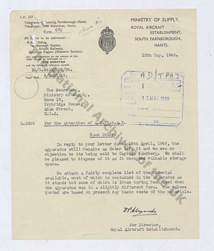 In 1944 a contract was arranged with the O.K.W. with Continental Metall A.G. for further development, but this was never carried out owing to the state of the country. In 1945 the apparatus was destroyed by a bomb, in Kohlberg, whither Coler had evacuated. Since at that time Coler had been employed, sometimes as an engineer, sometimes as a laborer. Modersohn had severed his connection with Rheinmetall Borsig, of which he had been a director, and was working for the Russian authorities as a consultant in chemical engineering.