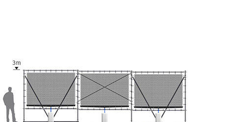 The CloudFisher is the first standard fog collector that can withstand high wind speeds. It is quick and easy to install, and requires no energy and only minimal maintenance. All the materials are food-safe. The CloudFisher can supply people with high-quality drinking water that meets WHO standards, and can also provide water for agriculture and forestry. It is mainly deployed in mountainous and coastal regions where rainfall is scarce but clouds and fog are plentiful.