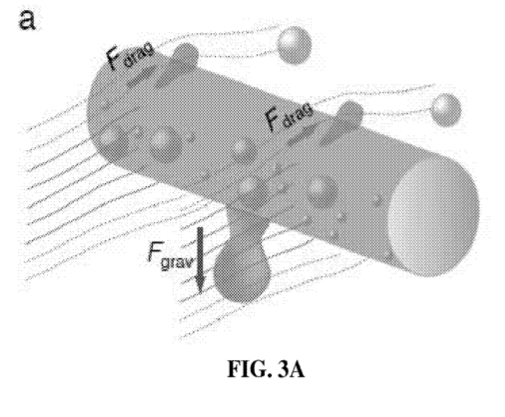 [0043] FIG. 11 is a schematic diagram depicting a water droplet on a cylindrical mesh filament.