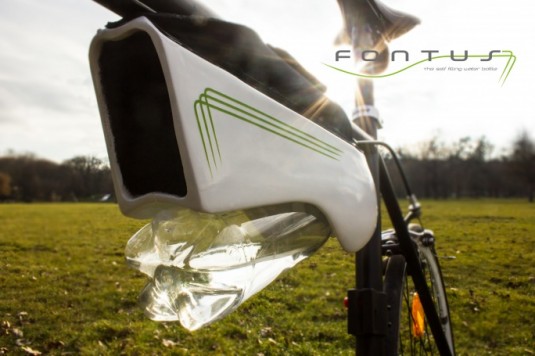 Fontus is a self-filling water bottle for your bicycle. This device collects the moisture contained in the air, condenses it and stores it as safe drinking water. Powered by solar cells, it can harvest up to 0,5 l water in an hour´s time under the right climatic conditions.