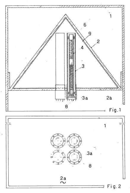 Between tubes 3 and the walls of 11 element in pyramid 2 can be inserted an unspecified filling material, obviously nonconductive electrically.