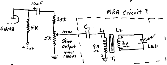 B. Since the tube-type generator was capable of less than 4 mW of sine wave power at 100 KHz, this test was necessarily low-level. The generator in this case was purely resistive and thus this may have been a factor in the operation of this particular MRA-type circuit.