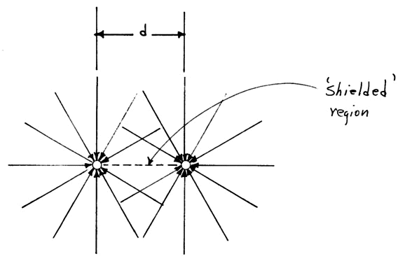 (1) Since ‘mass’ results in increased rhysmon density or ‘excess’ directed rhysmonic vectors, the number of such vectors going through a sphere at any radius will remain the same. However, the number of lines or vectors crossing a unit area of the surface of the sphere will depend on the radius, and thus the density of vectors, or in this case, the gravitational flux, will fall off as the square of the radius.