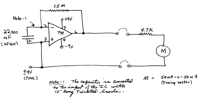 Note: The capacitor is connected to the input of the IC with 10” long twisted leads.