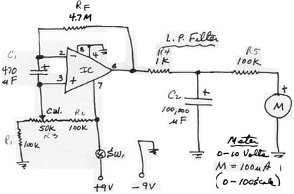 rexresearch.com Hodowanec Index ~ Home Gregory HODOWANEC Rhysmonic Cosmology Gravimeter Ciruit #2000 (12-1-1988) Notes: (1) Increase in g reads up-scale?; (2) IC: OP-91; OP-90 works well here also (higher gain).