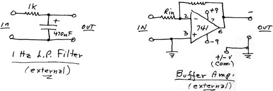 5. Buffer stage (741) needed to drive Rustrak low-Z without instabilities.