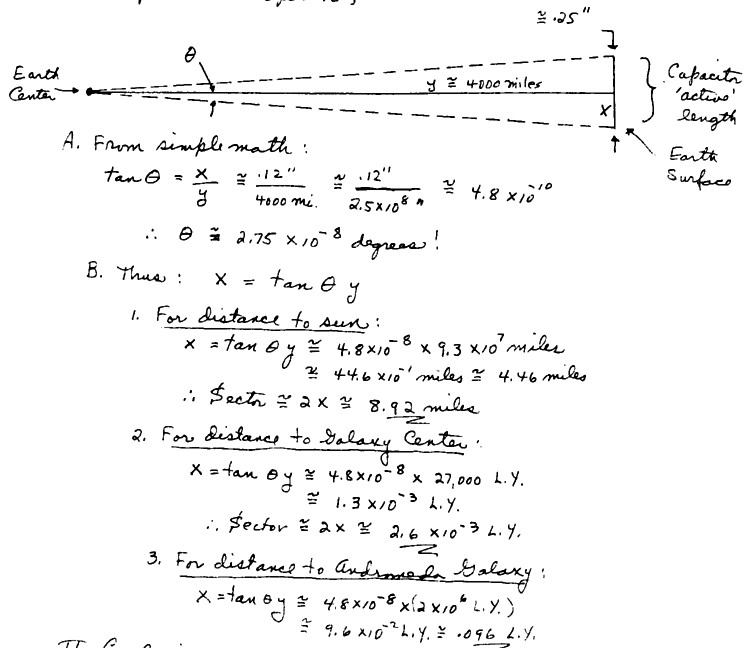 2. While the ‘active’ section of the 2200 uF capacitor may be somewhat larger than the assume 0.25”, the sectors scanned in these experiments are very narrow! This would explain why the daily scans are so much different! The Earth’s movement in the cosmos would result in monitoring different sections of the universe on a daily basis, and only the very dense structures may repeat daily. Most structures ‘seen’ are very deep in space. There is room for much research here in terms of detector geometry and sampling techniques!