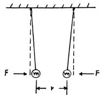 (1a) Newtonian Gravitation: F = Gmm / r2 . For example, when the masses m are one gram each, and the spacing between the mass centers is one centimeter, then the force of attraction F is equal to:6.67 x 10-8 dynes.