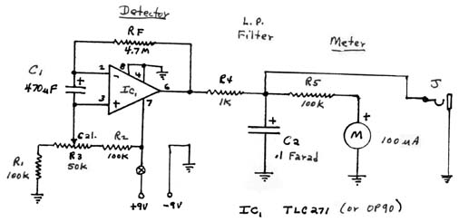 Although the current drain for the unit is low, an on-off switch is provided to conserve battery power during non-use periods. It must be remembered that due to the long time constant of the output filter, the unit must be allowed several minutes to stabilize after turn-on. While the unit is best constructed within a metal enclosure to avoid possible RF interference (RFI), the author found that the presence of the input protective networks within the op-amp device tended to suppress such RFI responses. Thus the prototype unit was constructed in a plastic box and no RFI problems were experienced.