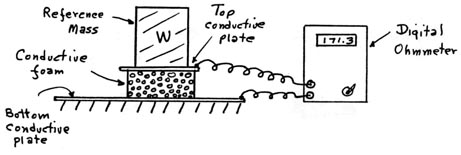 In the simple spring-type scale system, the downward acceleration of a mass (as imparted by gravity) is impeded or retarded by the restoring force presented by the spring as shown in Figure (1a). Here, the change in the position of the mass is shown by a pointer and a calibrated scale. The pointer position is generally amplified by a lever or system of levers. For an accurate small weight variation determination the scale system must have a linear response to the weight variations, i.e., the system must obey Hooke’s Law, that is the restoring force constant must also be linear. In this case, the relationship that the weight would be equal to the mass times the accelerating factor, i.e., W = mg, holds, since the mass is held constant, any change in weight would imply a change in g. Rather than the purely mechanical type of readout for weight variations, an electrical type of readout is preferred. The author has previously developed a very simple mechanical-type of gravimeter with an electrical readout as shown in Figure (1b)(Ref. 3). Here, the restoring force in the scale system was provided by a conductive foam material in which resistance changes due to weight variations were read directly by an ohmmeter which could be calibrated in terms of weight instead of resistance.