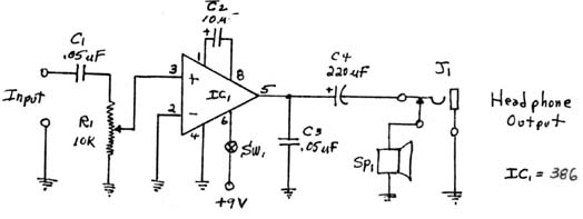 Figure 2: Simple Audio Amplifier useful with the Scalar Field Detector