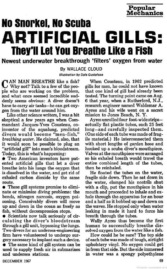 Wallace Cloud : "Artificial Gills : They'll let you breathe like a fish "