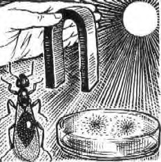 The flying cocoon will jump untill it has finally landed in a cool place, for example a crack in the ground. It must have found itself in my net during its strange flying journey, at the moment of its jump. It all resembled poltergeist unexplained "jumps" of household objects, many times described in papers. I have placed the cocoon on glass to look at it from below. Could it be that the larva draws in its bottom and then abruptly releases it? Nothing of the kind. There were no dents at any point and the cocoon jumped no matter which way I rolled it. It was also remarkable that it jumped sideways from the horizontal, smooth and slippery glass pane. I have measured its trajectories. They were up to 35 mm long and up to 50 mm high. This means that the cocoon lifted itself up to a height 30 times its own width! Shall I leave this capsule without support? But how? With a piece of loose cotton wool! I have fluffed up a piece of cotton wool and I have placed the cocoon on this cotton cloud. I have brought it out into the sun and impatiently waited. If the cocoon's inhabitant jumps by hitting the lower wall, making the cocoon to bounce off its support, it should not work this time. The impact should be absorbed by the thin fibers of the cotton. Theoretically, the cocoon shouldn't even move. But no, it takes off from its motionless pad, up and aside, as it did before. I measure its broad jump at 42 mm, about as good as as before. The insect must have been hitting not the bottom, but the top part of the cocoon at any rate. It must have been doing something that caused the capsule to move. Frankly speaking, it is as I write these notes that I feel agitation. I found nothing supernatural in the jumps of my tiny prisoner back in 1981. This was because I knew that, according to physics, there can be no reactionless motors. Otherwise I would have bred a couple of hundred of those insects. Thankfully, they are quite common and I would have studied the phenomenon thoroughly. Now, let us fantasize a little: "What if the batiplectes wanted to leave the Earth? An adult, winged insect would have no luck because our atmosphere is quite rarefied up the top and wings are no match for it. A larva in a cocoon is an entirely different matter. It could in theory, after lifting its capsule 5 cm in a jump, take it up even further while still in the air and then again and again. If the cocoon were airtight, I mean if the pilot had sufficient air reserve for breathing, the device would be able to leave the atmosphere and would have no obstacles to a limitless build-up of speed. Such is the alluring, incredible value of reactionless motors, declared, alas, a product of empty fantasy. But even if you are no physicist, you still have a hard time imagining what a tiny larva does in there if its vessel soars 5 cm high. It simply can't be ...and yet it jumps!