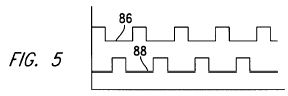 Figure 5 is a graphical view of the signals driving the gates of FETS 82, 84 of FIG. 4, with the voltage of the signal driving the gate of FET 82 being represented by line 86, and with the voltage of the signal driving the gate of FET 84 being represented by line 88.