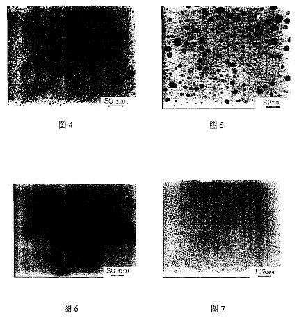 [0051] Take the (31.5g) oleylamine and silver nitrate (10g) in a beaker Example 3 was added and stirred toluene (100mL). Dark yellow solution was obtained is gradually added (the dispersed state without being dissolved) was added formic acid (4.1g) and toluene (50mL) to this solution. After 3 hours, allowed to agglomerate precipitated Ag nanoparticles was poured into methanol and the reaction solution was removed by decantation and the supernatant was washed away and excess alkyl amine and salts. Ag solid content of the aggregates was about 5g. Aggregates were easily re-dispersed in toluene. It was observed particles with a transmission electron microscope was diluted a portion of the solution was re-distributed.