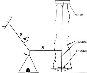 Figure 3: The method involving three threads A, B & C as used to measure the thrust of a demonstration flying saucer