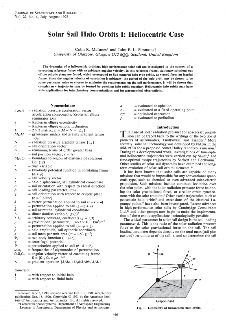 The concept of the statite was invented independently and at about the same time by Robert L. Forward[1] (who coined the term "statite") and Colin McInnes, who used the term "halo orbit"[2] (not to be confused with the type of halo orbit discovered by Robert Farquhar). Subsequently, the terms "non-Keplerian orbit" and "artificial Lagrange point" have been used as a generalization of the above terms.